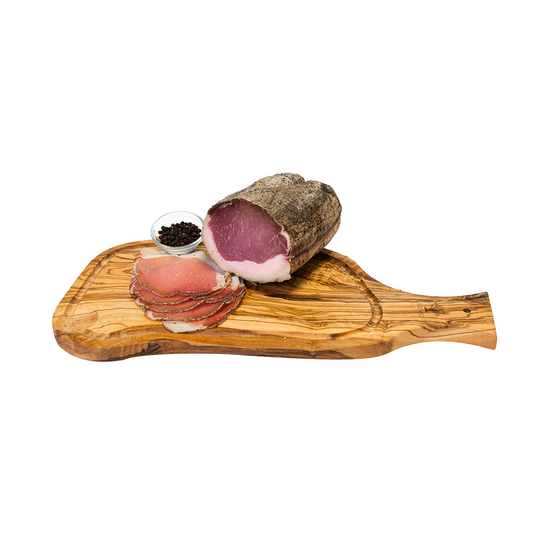 INGREDIENTI: lombo di suino, sale marino fino, pepe nero, aglio, vino rosso.