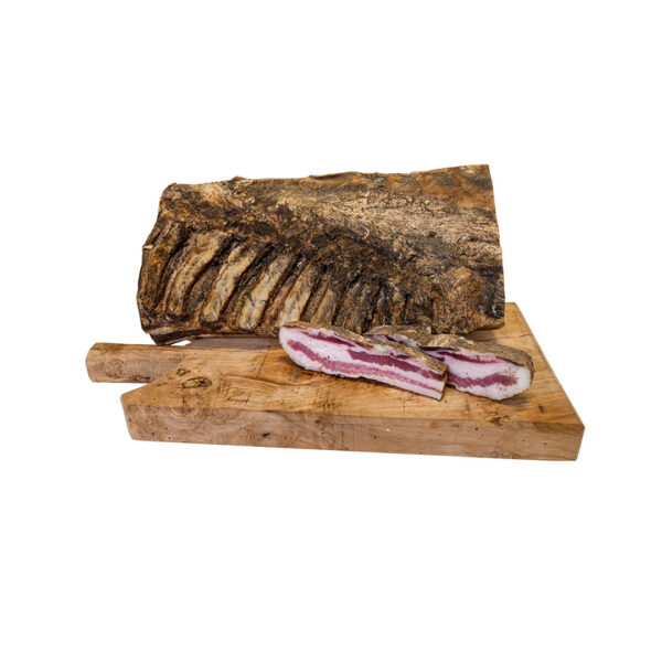 INGREDIENTI: ventresca di suino, sale marino fino, pepe nero, aglio, vino rosso.