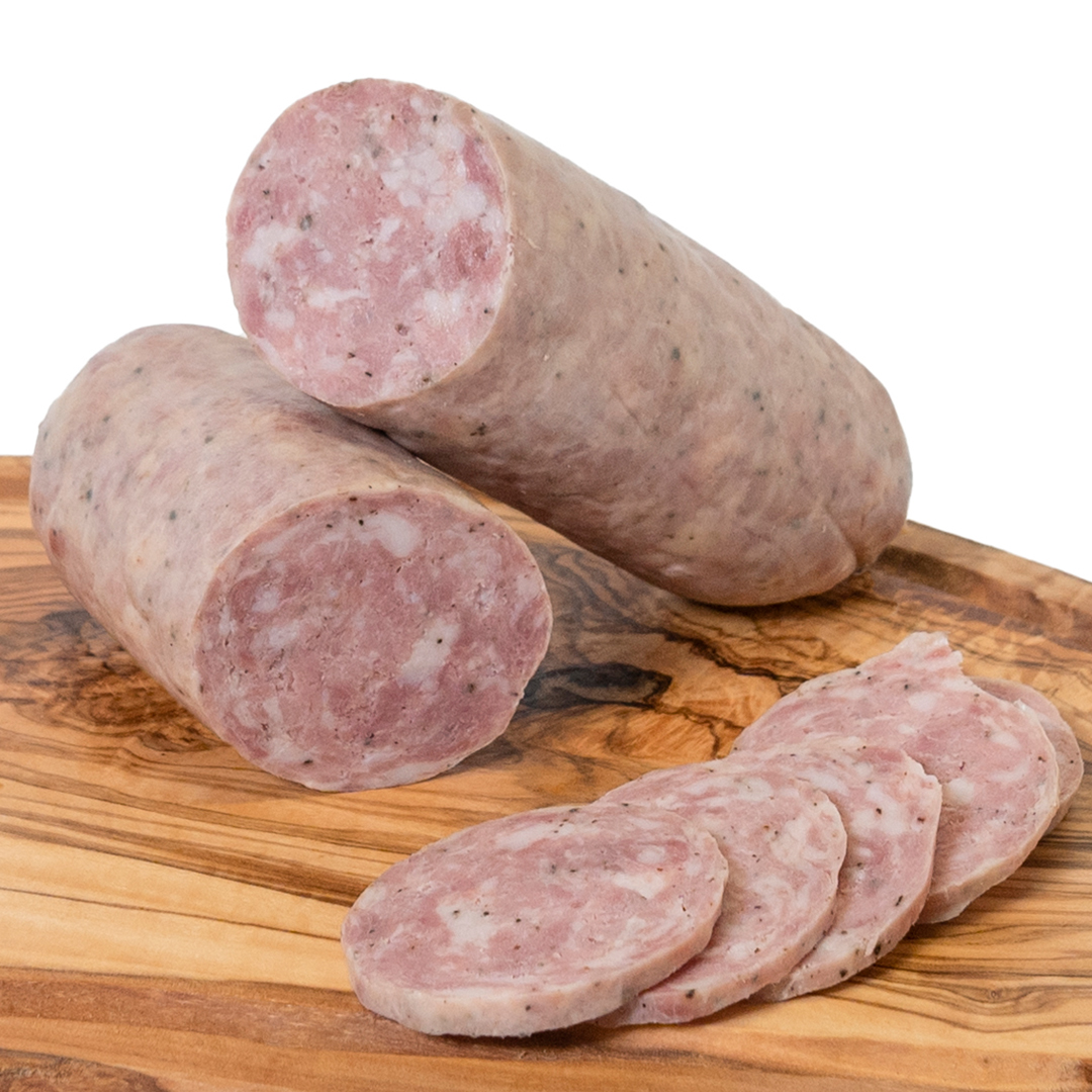 INGREDIENTI: carne di suino, sale marino fino, pepe nero, aglio.